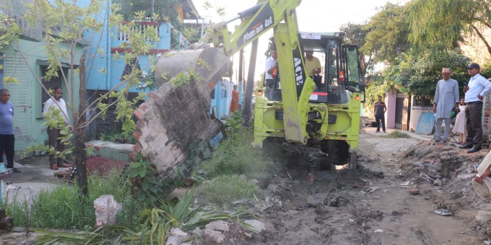 विराटननगर महानगरले मापदण्ड विपरितका पर्खाल हटाउन थाल्यो
